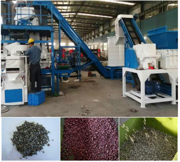 舊散熱器銅鋁破碎分離生產線是通過撕碎機、破碎機、磁選機、氣流比重分選機等一系列設備組合而成: